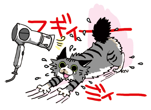 でも、ドライヤーをかけようとするといやがって、なきながら、すごいはやさでにげていきます。